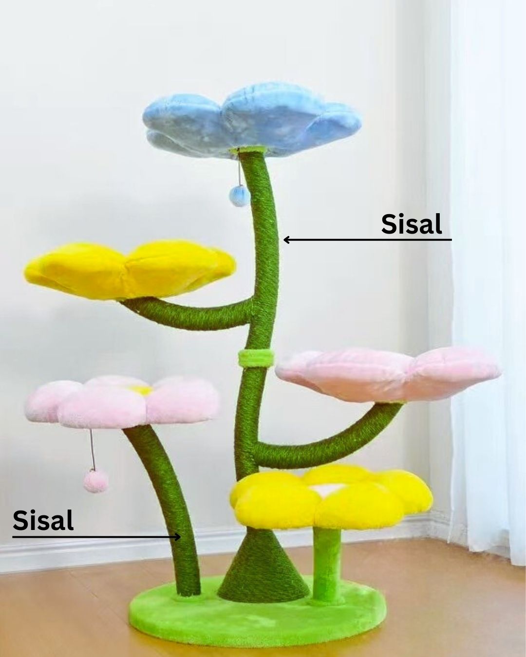 Dopamine colors bring positive vibes and playful energy into your home – as vibrant as life with our beloved cats. The Grace Bloom – Cat Tree combines floral elegance with colorful, cheerful hues, making it a statement piece for design-conscious owners and active, special cats.